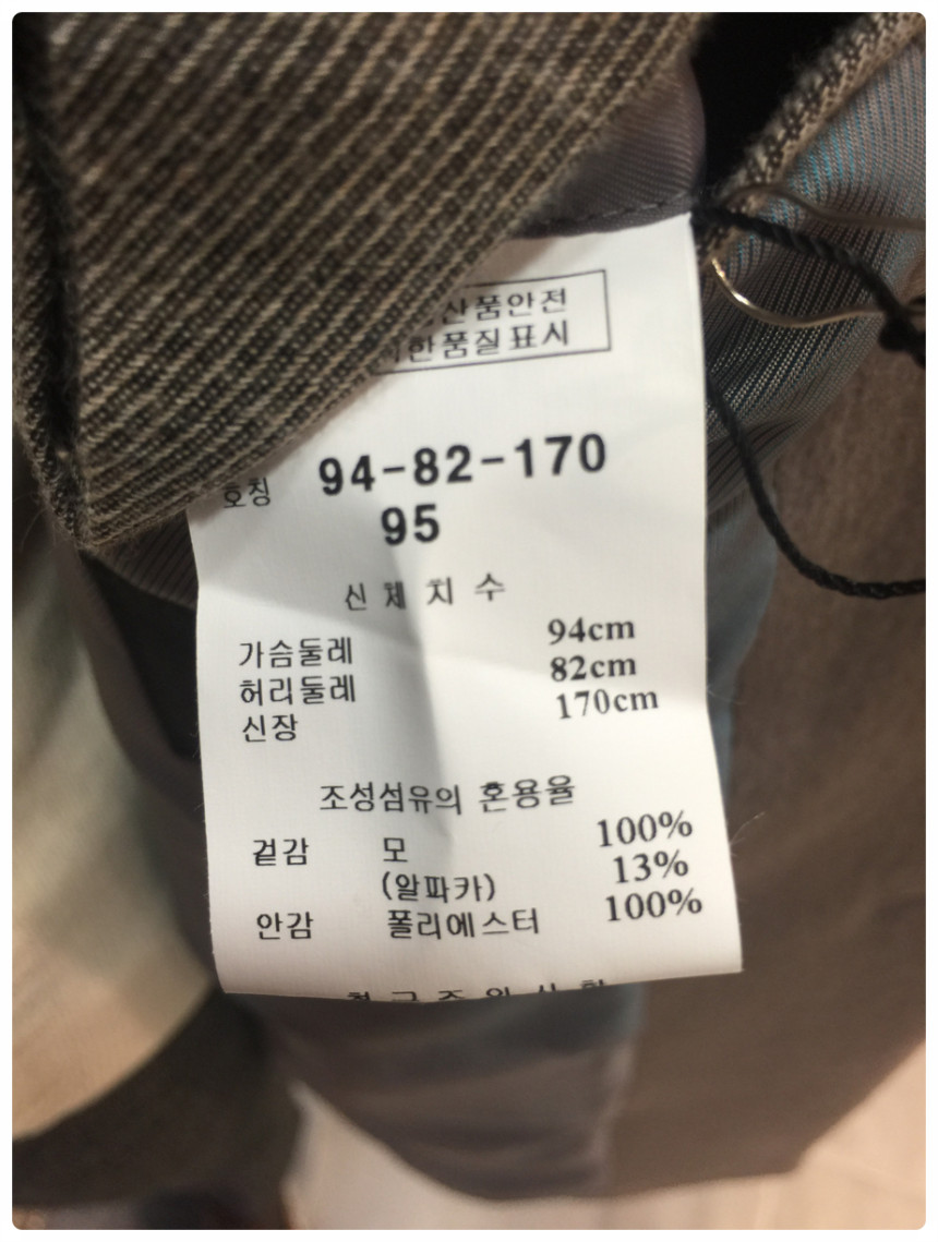 95 사이즈-가슴둘레 94CM 허리둘레 82CM