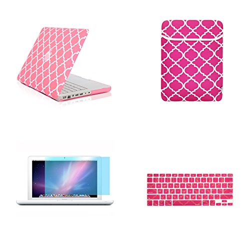 -. Title : TOP CASE 4 in 1 - Apple Macbook White 13-Inch Quatrefoil Ultra Slim Rubberized Hard Case + Keyboard Cover Skin + LCD Screen Protector + Sleeve Bag