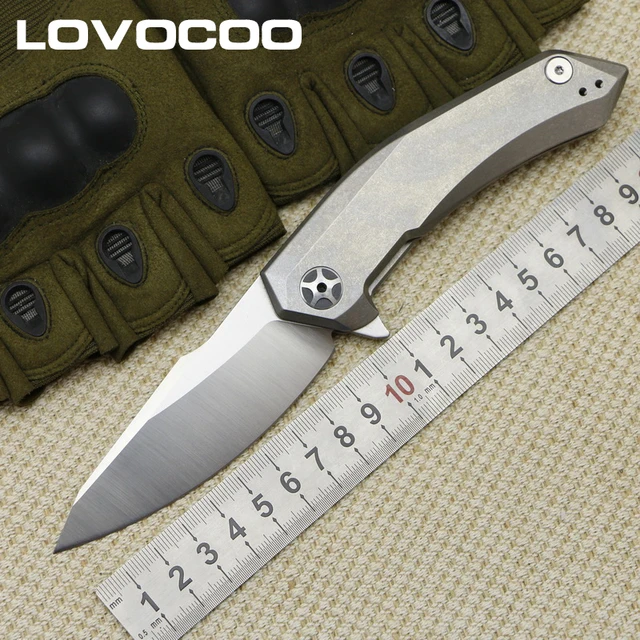 | [해외] LOVOCOO 0095 D2 블레이드 티타늄 핸들 세라믹 볼 베어링 전술 플리퍼 접는 칼 캠프 야외 생존 나이프 EDC 도구 |