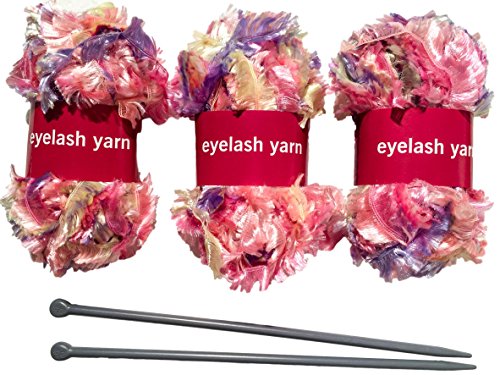 Knitting Set For Making Eyelash Yarn Scarf | (3) Yarn Balls (131ft) | Guaranteed | (2) Knitting Needles | Scarf Knitting Kit | Great Gift Idea