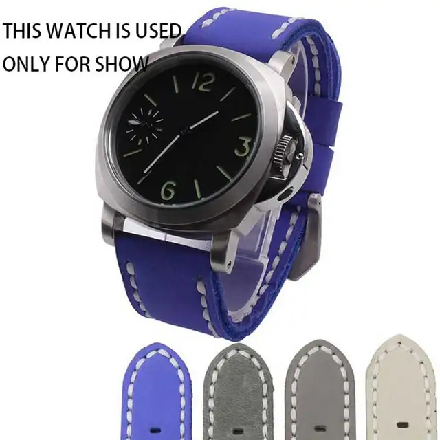 JAWODER 시계 밴드 24 미리메터 남성 블루/화이트/회색 부드러운 스크럽 정품 가죽 스트랩 스테인레스 스틸 실버 핀 버클 팬