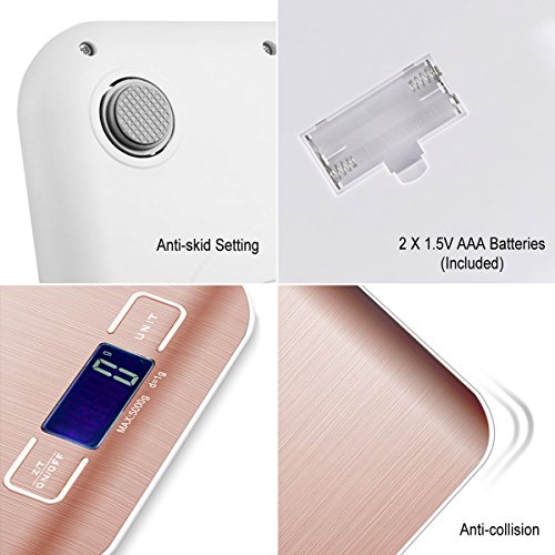 - ✅SAFE MATERIAL —— The sleek stainless steel platform is absolutely made of food grade material,allowed putting food on the scale directly. Antifouling and waterproof, easy cleaning and maintenance, the scale is suitable anywhere in your kitchen.