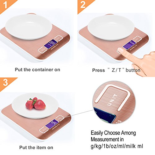 - ✅EASY OPERATION —— A precise tare function can reset the current weight on the scale to zero.Supports to switch units from “oz”, “ml”, “g” and “oz’lb” with an easy UNIT button.Convenient tare function helps to measure messy ingredients like powder and grains.