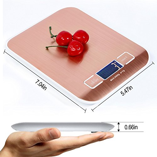 Digital Kitchen Scale,Multifunction Cooking Food Fruit Scale,Electronic Weight Medical Scale with LCD Display,Stainless Steel Surface,Tare Function of High Accuracy 0.002lb/1g and Slim Design (Golden)