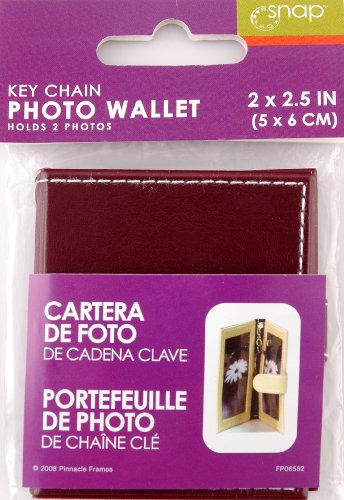 - Burgundy photo wallet holds two photos.