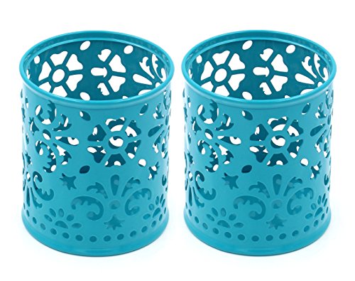 ▶ High Cost-Performance : Package includ 2 pcs pencil holders,made of thicken metal plate,carved hollow flower pattern design