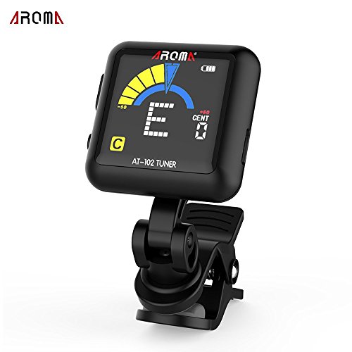 ammoon AROMA AT-102 Rechargeable Rotatable Clip-on Electronic Tuner Color Screen with Built-in Battery USB Cable for Chromatic Guitar Bass Ukulele Violin