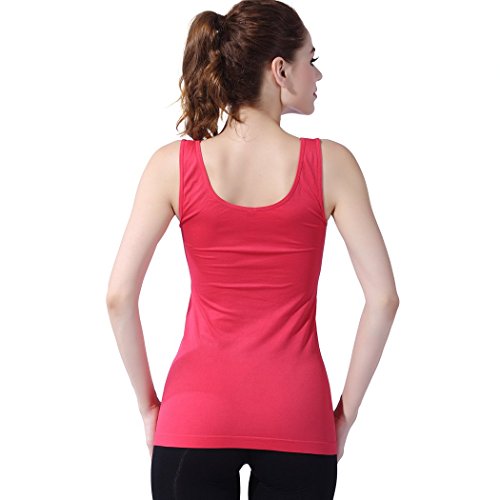 Franato Women's Seamless Double Scoop Neck Layer Tank Top Tunic Cami (M, carmine)