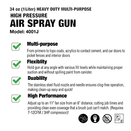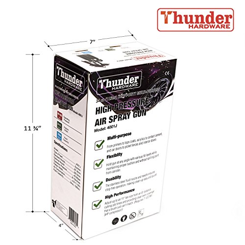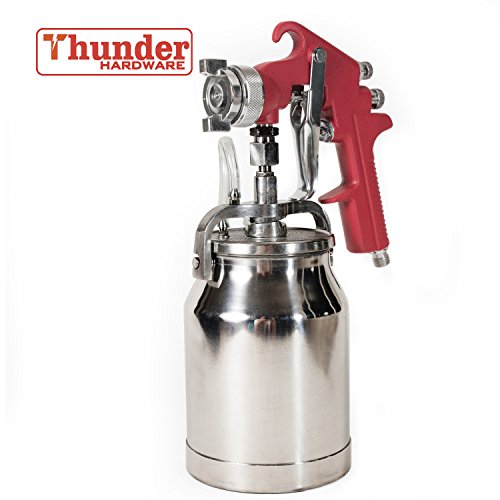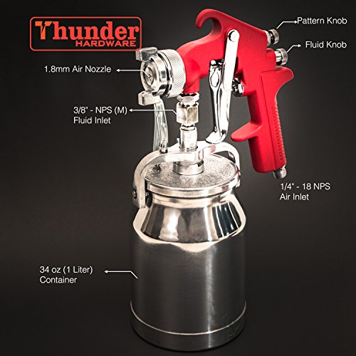 Thunder Hardware 4001J 34 oz Siphon Feed Spray Gun - 1.8mm Nozzle for a variety of low viscosity paints, such as lacquer, enamel, stain, urethane with air flow and paint pattern control knob