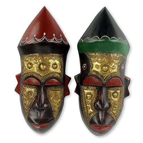 NOVICA 'Akan Chief I' (Pair) African Wood Masks