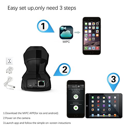 Support motion detection and loop recording :Support 24/7 loop recording, motion detection recording (you can set the specific time specific date to set motion detection ( Like From 5 :00 to 7:00 am on Sunday) to Micro SD card (up to 64G), and the recordings can be also viewed on your mobile phone (IOS, Android) PC (Window, MAC) and browser (IE8 and above version; Firefox) any time anywhere.