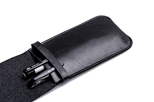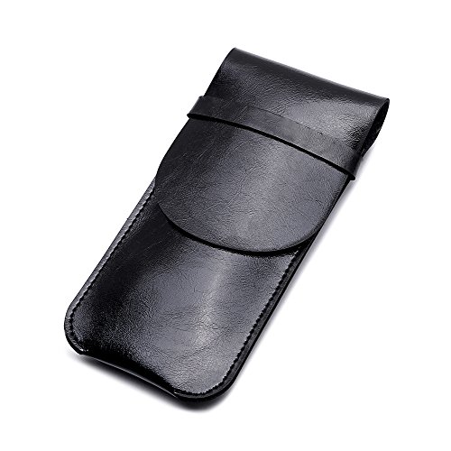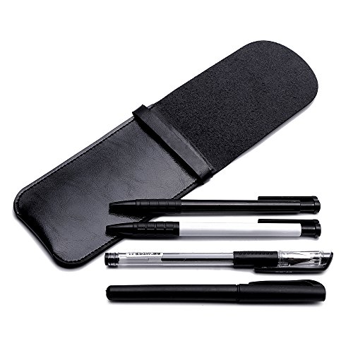 Shuxy Leather Pen Case Holder Handmade Fountain Multi Pens Pouch Soft Pen Protective Sleeve Cover for Ballpoint Pen, Stylus Touch Pen - Black