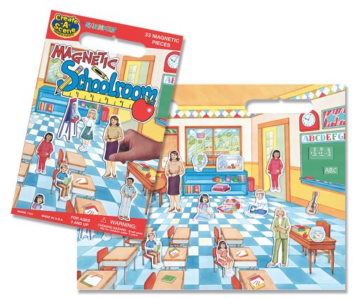 -. Binding : Toy -. Brand : PlayMonster -. EAN : 0038901071225 -. Feature : Spacious 18" x 14" play board folds in half for easy storage / Place magnets on the board to make fun scenes, over and over! / Play board is coated for easy clean up; magnets are vinyl and waterproof! / Engaging, quiet play for one or more children / Ages 3 and up -. IsAdultProduct : 0 -. Label : Patch Products -. Manufacturer : Patch Products -. Model : 7122 -. MPN : 7122 -. PackageQuantity : 1 -. PartNumber : 7122 -. ProductGroup : Toy -. ProductTypeName : TOYS_AND_GAMES -. Publisher : Patch Products -. Studio : Patch Products -. Title : Create-A-Scene Magnetic Playset - School Room -. UPC : 038901071225 -. Warranty : No Warranty