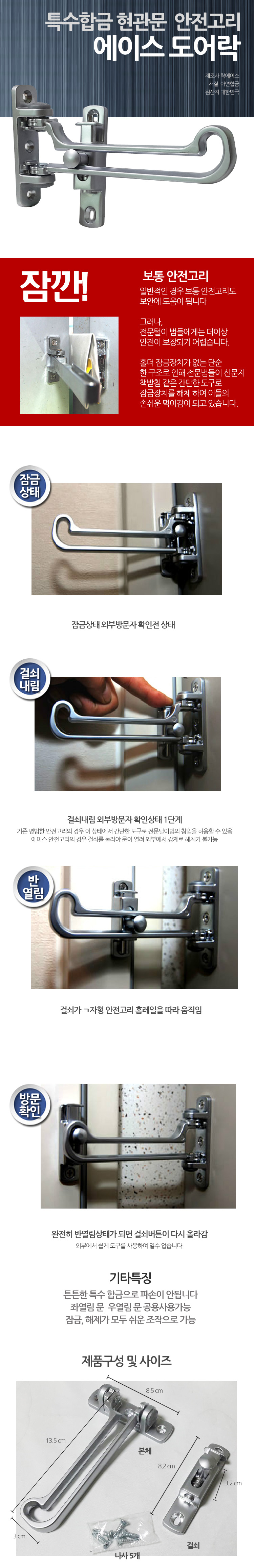 - 품명 및 모델명에이스 아연합금 특수 도어락