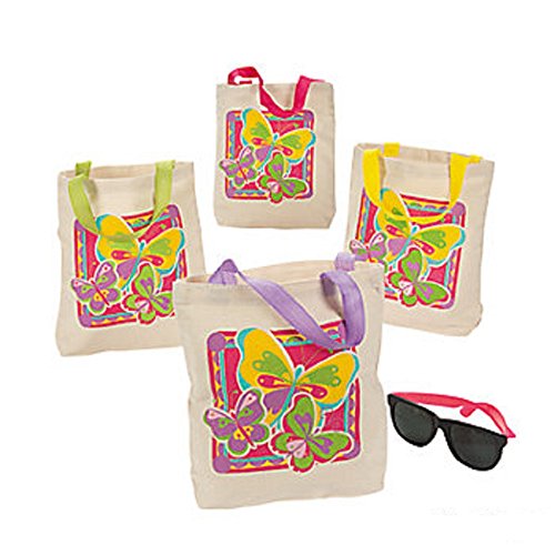 4 ~ Butterfly Tote Bags ~ Small 8" X 8" ~ 85% Cotton / 15% Polyester ~ New