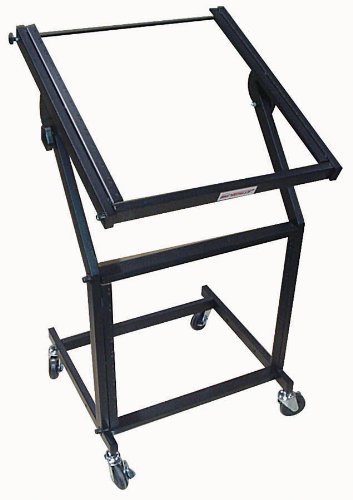 -. Feature : 9 rack spaces on lower vertical section and 12 on the adjustable-angle top section / Super heavy-duty lockable casters / Height 37.625-Inch / Color: Black