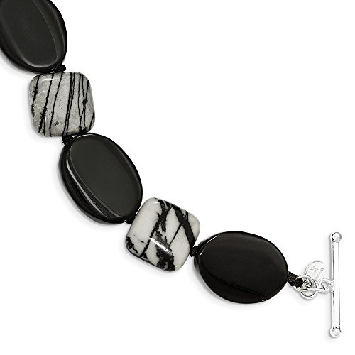 -. Title : Sterling Silver Black Agate & Zebra Jasper Bracelet,7.5