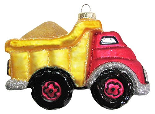 3.5" Yellow Red Toy Dump Truck Blown Glass Christmas Ornament