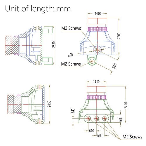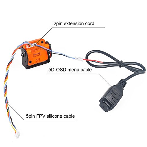 - Horizontal RunCam Swift2 : 600TVL 2.1mm 165 Degree NTSC FPV Camera ,the voltage is DC 5-36V ,which is integrated OSD and MIC
