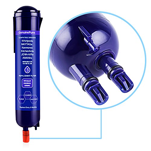 GenuinePure 4396841 refrigerator water filter 2 pack replacement, compatible with Whirlpool 4396841 4396710,Pur Filter 3,PUR W10121145,W10121146,KENMORE 46-9020,46-9020P,300 gallon capacity