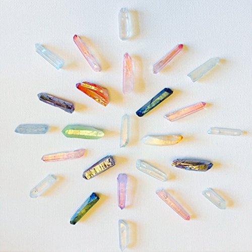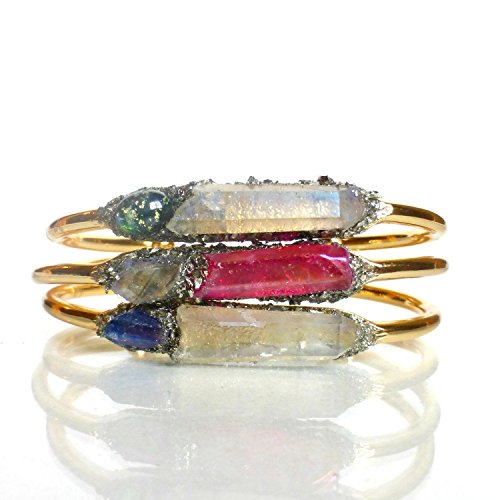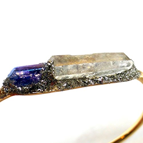 -. Title : 1 Raw Crystal Rainbow Aura Quartz Pyrite Gold Cuff Bracelet White and Blue