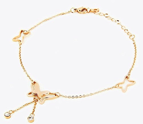 -. Feature : 可愛らしい蝶をモチーフにしたアンクレット。キュービックジルコニアをチャームに配し、素足が引き立ちます。 / チェーンの長さ:24.5㎝+アジャスター6㎝ / 材質:ステンレス+ローズゴールドメッキ、CZ / ギフトボックスでお届けします。