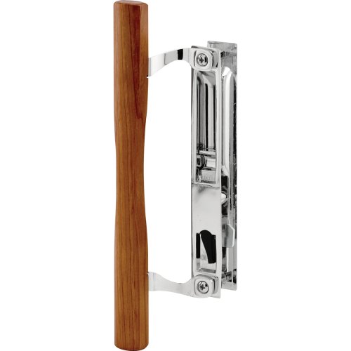 This sliding patio door handle set is constructed of mixed materials including wood and diecast components, and it features a keyed exterior pull. The outside locking pull and the inside supports are constructed of diecast and come finished in a black painted color and chrome finish respectively. The inside pull is made of natural wood and is finished in a smooth, clear finish. This handle set is a flush mounted, hook style handle set and it is non-handed allowing it to be used on both left and right-handed patio sliding doors. This handle set fits all popular flush lock punch-outs with a 6-5/8 in. hole center spacing, and it is used to replace damaged or missing flush mounted, hook style handle sets on sliding glass doors ranging from 1 in. to 1-1/8 in. thick door frames. This item is packaged complete with a keyed cylinder lock, 2 keys and 4 different hook lengths. Installation instructions and all fasteners necessary for the installation of this handle set are included in packaging, including the 2-11/16 in. keeper that mounts on the jamb. *Product Selection Tip: Besides matching the style and type of locking mechanism, the other main specification to match is the measurement of the mounting hole centers, from center-2-center.Feature