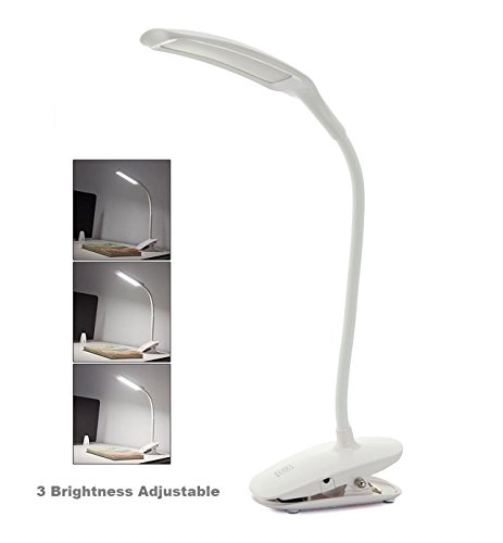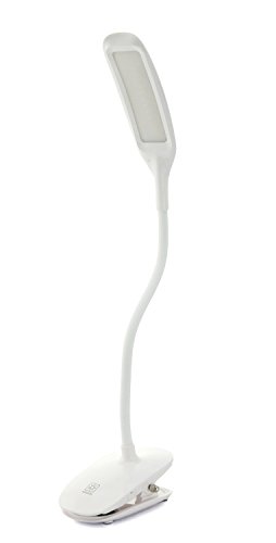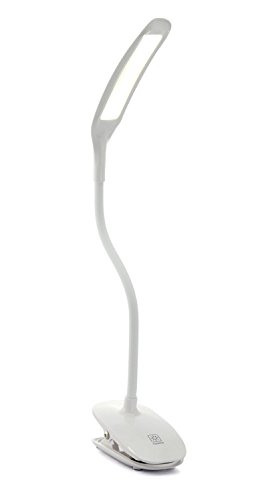 -. Feature : Desk lamp and clip lamp 2 in1: It can stand on desk with its own anti-skid base just like common lamps / Touch sensor switch is electrode less dimming, 3 adjustable brightness levels to suit your activities / Flexible gooseneck tube to adjust its height and 360 degree angle, 14 long life LED's, ultra portable and lightweight, only 4.3 oz. / Powered by built-in high-capacity and long-life chargeable battery / Suitable for every place - can use in home, office, dorm or travelling, can use for reading, study, piano, bedside and general light