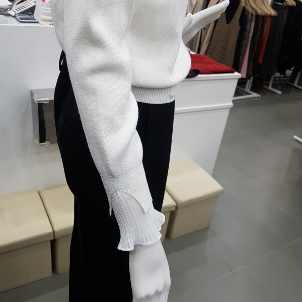 쉬폰배색니트에요^^목부분과소매에 쉬폰배색으로 포인트를 주고 짧게나와 귀엽고 여성스러운 스타일이에요^^가슴단면 약 47m 총기장 약53cm
