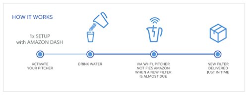 The Wi-Fi enabled Brita Infinity Water Filter Pitcher with Amazon Dash Replenishment tracks usage and automatically orders its own replacement filters, so you'll never run out of great tasting water again. Simply place the filter in the pitcher and set the indicator. As the filter starts to run low, the smart pitcher triggers a replacement order and a new filter is delivered to you right when you need it. Replace the filter, reset the indicator and your pitcher is ready to go. With the convenience of Amazon Dash Replenishment, you will always have a new filter before you run out. This BPA free water filtration pitcher has a dual screen carbon activated filter, which reduces contaminants including lead, zinc, copper, mercury and cadmium that may be found in tap water. One filter can replace as many as 300 standard 16 oz. plastic bottles, cutting down on waste and saving you money. Ergonomically designed with a flip top lid and a comfort grip handle, the pitcher is easy to refill and pour. Great taste, less waste and more savings with Brita.Feature