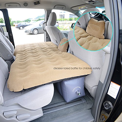 Package includes:1x Car airbed, Free gifts: 2x inflatable pillow, 1x children safety baffle 1x Car air pump, 1x repair patch and glue kits. 1x Storage Bag.