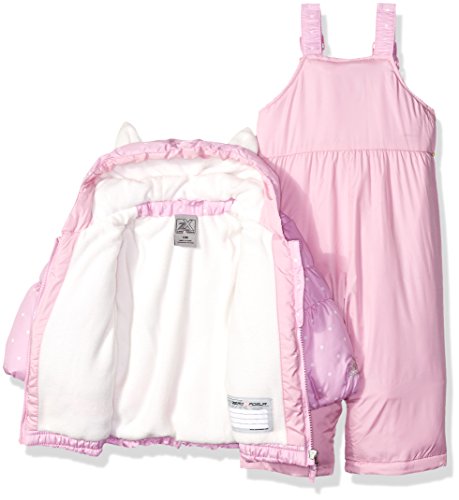 ZeroXposur dottie snowsuit will keep your little baby girls warm, dry and protected all winter long. The matching puffer jacket is water and wind repellant with a cute, matching print.Feature