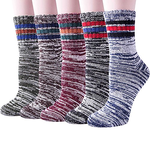 -. Title : 5 Pairs of Thick Knit Warm Winter Casual Crew Socks for Womens
