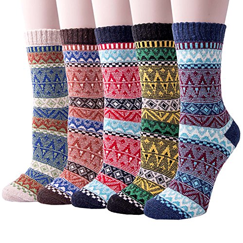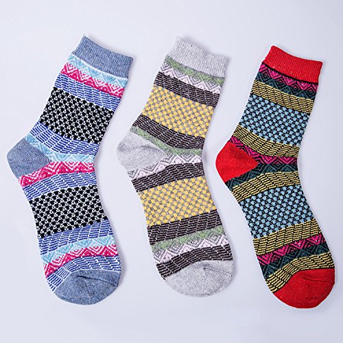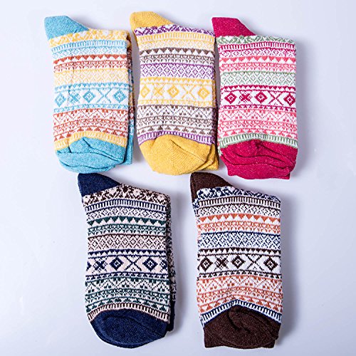 -. Feature : Packing Contents:5 pairs socks (mix colors) / Softness and flexibility with the jacquard weave / Comfortable, lightweight,and versatile enough for any occasion. These socks feature stylish patterns and vibrant colors which put a fun finishing touch on your outfits / Suitable for autumn and winter, elegant, fun, trendy and unique designs. Designed for comfort and style / These socks are standard American sizes that fit shoe sizes from 5 to 10, so everyone can enjoy warm, toasty feet