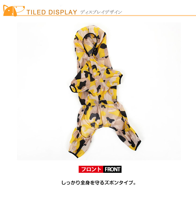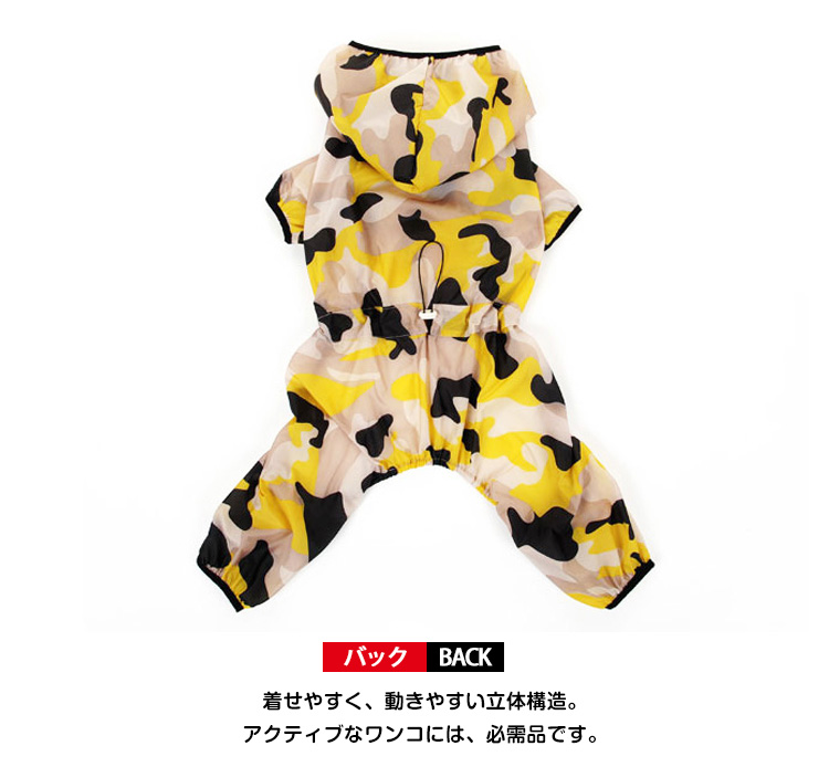 | 遊び大好きなワンちゃんの強い味方! しっかり全身を守るズボンタイプ。着せやすく、動きやすい立体構造。アクティブなワンコには、必需品です。 | |
