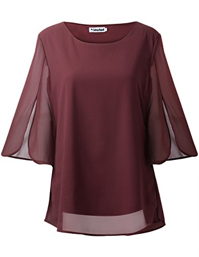 -. Feature : 素材:ポリエステル100% / ふんわりのシフォン素材で、女性らしく柔らかさをよく演出します。 / 薄手な袖部分は透け感のデザインで大人っぽくて上品な印象!気になる二の腕がすっぽり隠れるフリル袖も女性には嬉しいポイントです。 / 肌触りの滑らかな素材の裏地が付いて、着心地快適に仕上げた。 / お客様のファイドバックから見れば、ちょっと大きいということで、予めサイズ表を参考するようにお願いします。問題があれば、当店に連絡してください。できるだけ早く対応させていただきます。