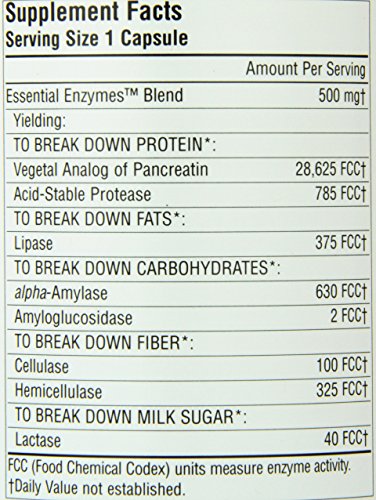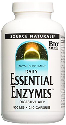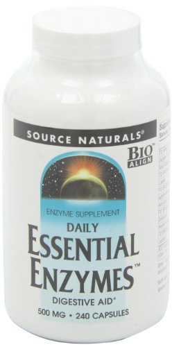Source Naturals Essential Enzymes 500mg, Full spectrum digestion with 8 active enzymes, 240 Capsules