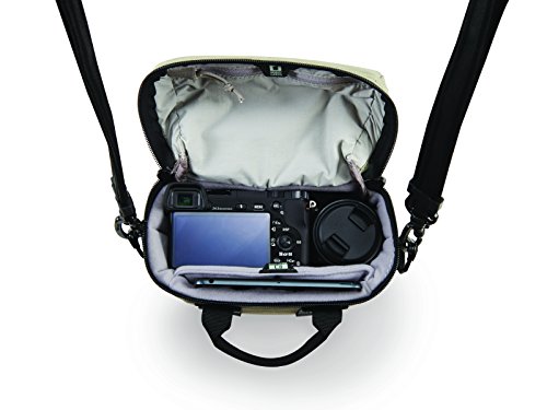 - Feature : Rugged canvas anti-theft camera bag fits mirrorless camera with mounted lens and 2 extra lenses; ideal for any city, outdoor, or travel adventure. / Lightweight, hidden eXomesh Slashguard stainless steel wire mesh embedded into fabric helps protect against slash-and-run theft / RFIDsafe Blocking Material built into pocket helps protect IDs and credit cards from hacker scanning / Adjustable wire-reinforced Carrysafe Slashguard Strap helps prevent cut-and-run theft; smart zipper security attaches zipper pullers to discreet hooks / Removable and adjustable shoulder strap with Turn and Lock security hooks; loop on back for securing to belt; iPad mini compatible sleeve