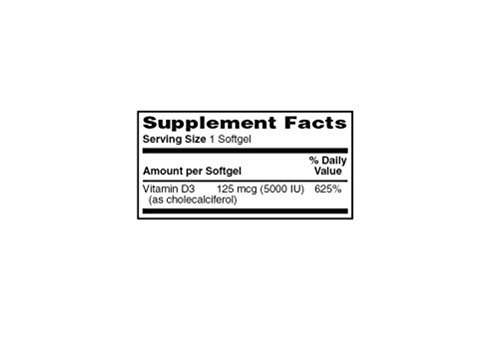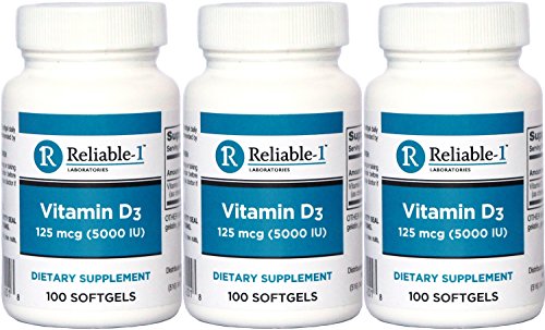 Reliable-1 Laboratories Vitamin D3 in Extra Virgin Olive Oil 5,000 IU daily for optimum levels.FREE OF: Milk, Fish, Shellfish, Tree Nuts, Wheat, Peanut and Soy.Vitamin D is fat-soluble and the amount absorbed from a serving can be greatly affected by factors like obesity, age, genetics, dietary deficiencies, and medical conditions. Most health organizations agree that a range of 30-80 ng/ml accounts for sufficient levels of vitamin D. The Vitamin D Council recommends that adults take 5,000 IU of Vitamin D3 daily to achieve and maintain optimal levels. This recommendation is based on research that shows at least 97% of people will attain levels above 30 ng/ml at this dose, without risk of toxicity.* Essential for healthy bones and teeth* Provides immune support* Promotes healthy muscle function* * These statements have not been evaluated by the Food and Drug Administration. This product is not intended to diagnose, treat, cure, or prevent any diseaseFeature