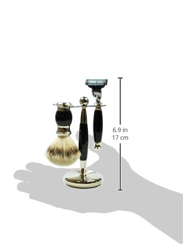 [Product Information]- 3pcs shave set - mach3 handle, pure badger brush and nickel plated stand