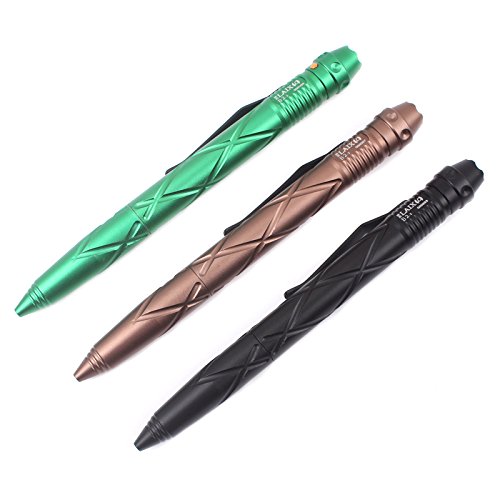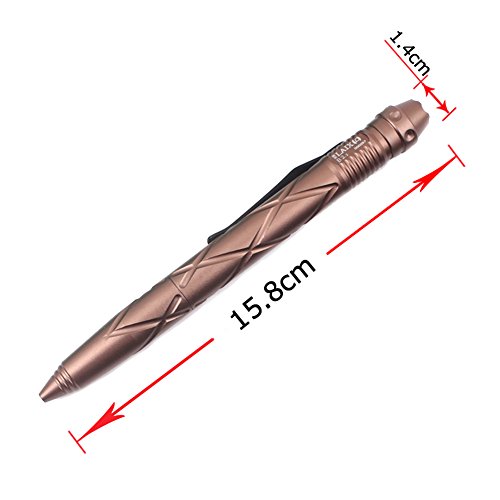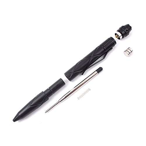 -. Feature : Ultra-solid & Red Material Construction: Pen body material is made of Aviation aluminum 6061-T6,a kind of sturdy and solid steel material. Pen head material is made of High hardness and ultra durable stainless steel embedded tungsten steel,its hardness is above HR90. / Most All-in-one Tactical Pen: Solid attack tip made of tungsten steel, could use for deng yourself from an unexpected attack; Tactical pen could be used as broken glass apparatus for quickly escaping from dangerous place under emergent and unexpected circumstance; High-strength precision rolling ballpoint pen, fluent writing. / Easy to Carry on and Go through the Security Check: This tactical pen has the advantage of small size and portability, you can bring it with you everyday, everywhere. It won't be confiscated as a prohibited goods and weapons by security personnel, but go through the airport security check easily. / General Utility Tool and Considerate Gift: It combines many function in one, it is a practical and high grade product. Delicate package proves that it is a perfect gift for you, your friends and family.