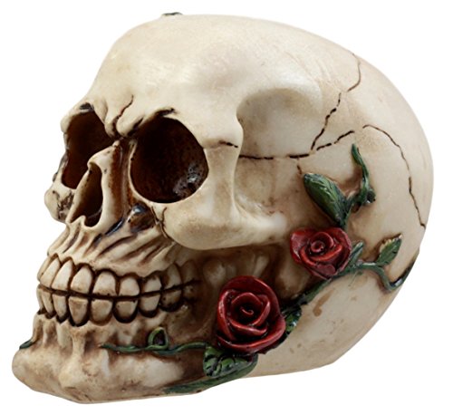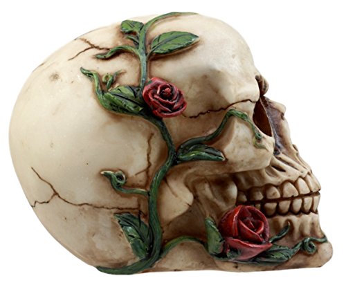 This Rose Vine Skull figurine is made of high quality polyresin. It is meticulously hand painted and polished. Color tone may vary from pictures.