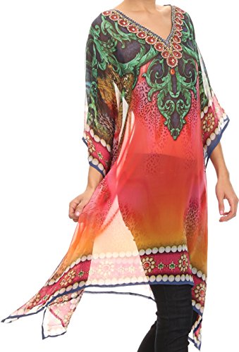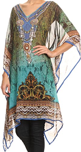 Binding : Misc. Product Description Features beautiful colors, rhinestone accented neckline, and unique designs including animal prints. Lightweight fabric and relaxed fit makes this top perfect for summer! Wear it over your favorite swimsuit or as loungewear! Machine Wash Cold, Line Dry. Imported. Material: 100% Polyester About Sakkas Store: Sakkas offers trendy designer inspired fashion at deep discounts! We work day and night to bring you high quality clothing and accessories for a fraction of the price you pay at department stores.Our incredible deals sell fast, so don't wait!