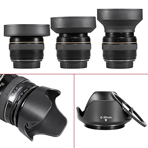 Compatible with the CANON Rebel (T5i T4i T3i T3 T2i T1i XT XTi XSi SL1), CANON EOS (700D 650D 600D 550D 500D 450D 400D 350D 300D 1100D 1000D 100D 60D) with 58MM Lens which include: EF-S 18-55mm f/3.5-5.6 IS II , EF-S 55-250mm f/4-5.6 IS II , EF 50mm f/1.4 USM , EF 75-300mm f/4-5.6 III USM.