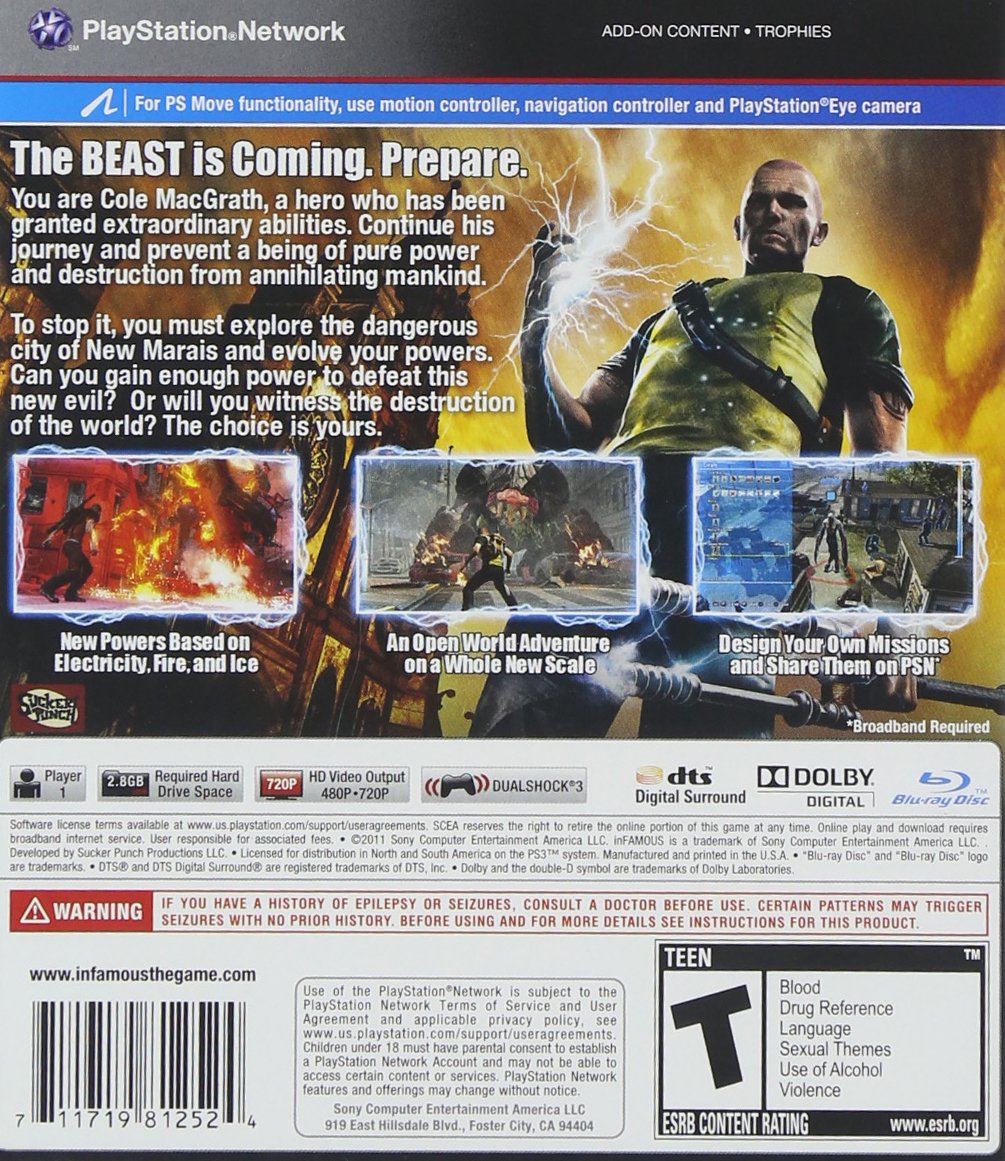 -. Binding : Video Game -. Brand : Sony -. Feature : True superhero experience as you discover what it means to be a true superhero with epic boss battles and powerful cinematic sequences / Advanced super powers experience being a full-blown superhero with enhanced electrical attacks, a visceral melee fighting system and new superpowers / All-new open dynamic world explore a vibrant world in the city of New Marais with increased interactivity and destruction using dynamic parkour moves / New morality system all-new morality system gives players freedom of choice and leads to 2 different endings / Create and share original missions with a built-in tool set that function as side quests -. HardwarePlatform : Playstation 3 -. OperatingSystem : PlayStation 3 -. Platform : PlayStation 3 -. ProductGroup : Video Games -. ProductTypeName : CONSOLE_VIDEO_GAMES -. Title : Infamous 2 - Playstation 3