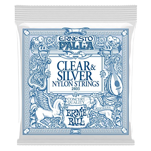 ReleaseDate : 2008-09-11 Studio : Ernie Ball Music Man Publisher : Ernie Ball Music Man Binding : Electronics Product Description Used on classical guitars. Plain strings are made of a solid nylon filament. It is similar to, but not the same as, the nylon used for fishing line. First, second and third strings are clear. Gauges: First = .028, Second = .032, Third = .040 Silver fourth, fifth, and sixth wound strings are made of silver plated copper wrapped around a nylon floss core. Gauges: Fourth = .030, Fifth = .036, Sixth = .042 0