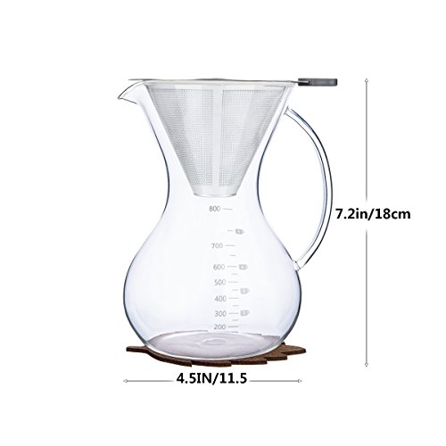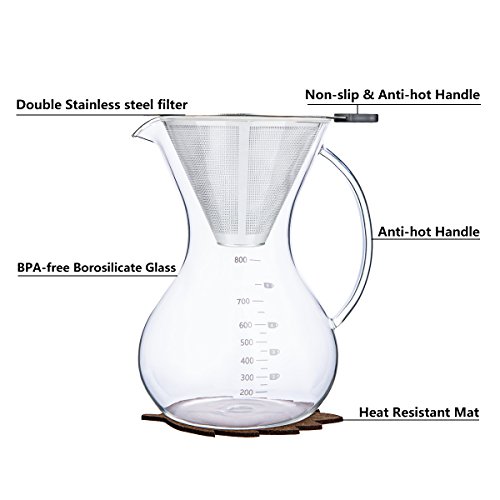 Achieve an amazing cup of coffee from the comfort of your home with this Pour Over Coffee Maker set. Pour-overs are manual brewing methods,they are widely accepted the best-quality brew methods in the world. Pour over coffee delights all of your senses while maintaining quality and consistency with each carefully considered step. it's really a simple, High fidelity way to brew delicious, small batches of coffee. Simple to clean,?just drop the filter in the garbage, rinse the coffee maker out and put it back on the shelf.