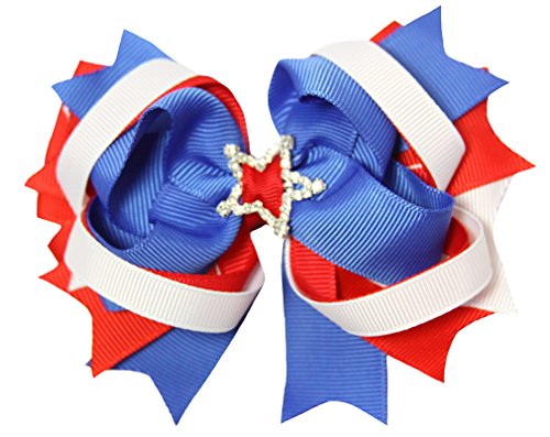 Product Description These grosgrain hair bows are the perfect addition to your little girl's accessory collection from Wholesale Princess. These bows are sold individually. 4", Red, White and Blue hair bow clips include a star shape rhinestone center. 0