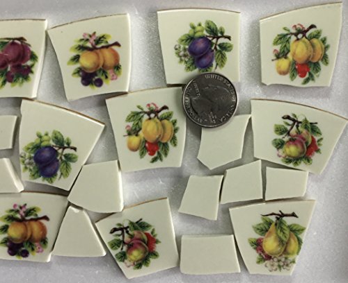 MOSAIC TILE ~ Broken Hand Cut Plates ~ China & Stoneware Dish Pieces ~ Supply for Mosaics Arts & Crafts ~ Large China Tiles with Colorful Fruits (T#412a)