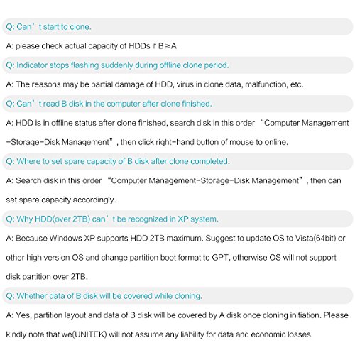 What We offer: 1 x USB 3.0 to SATA Aluminum Hard Drive Dock; 1 x 3.9ft Data Cable; 1 x 12V 3A Power Adaptor; 1 x User Manual; 2-year warranty quality guarantee, 24h friendly customer service and email support.